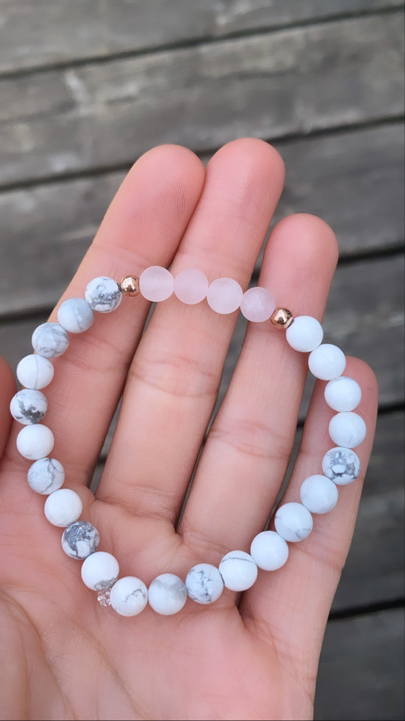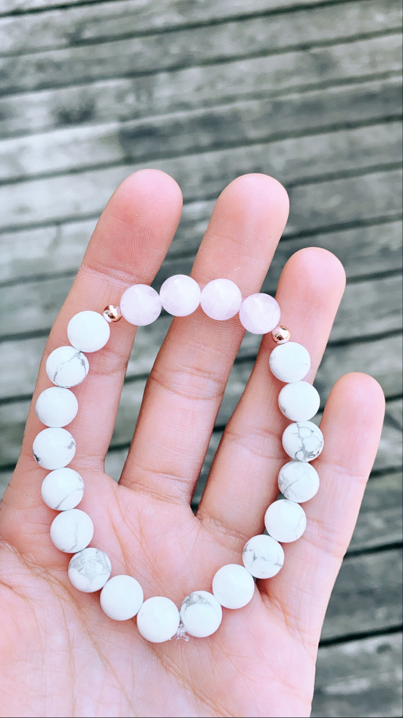 14k Rose Gold Filled, Howlite, Rose Quartz.