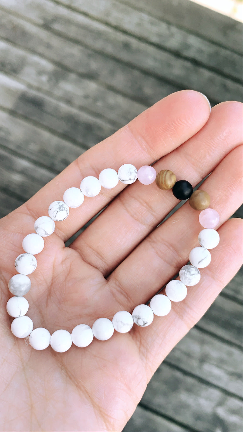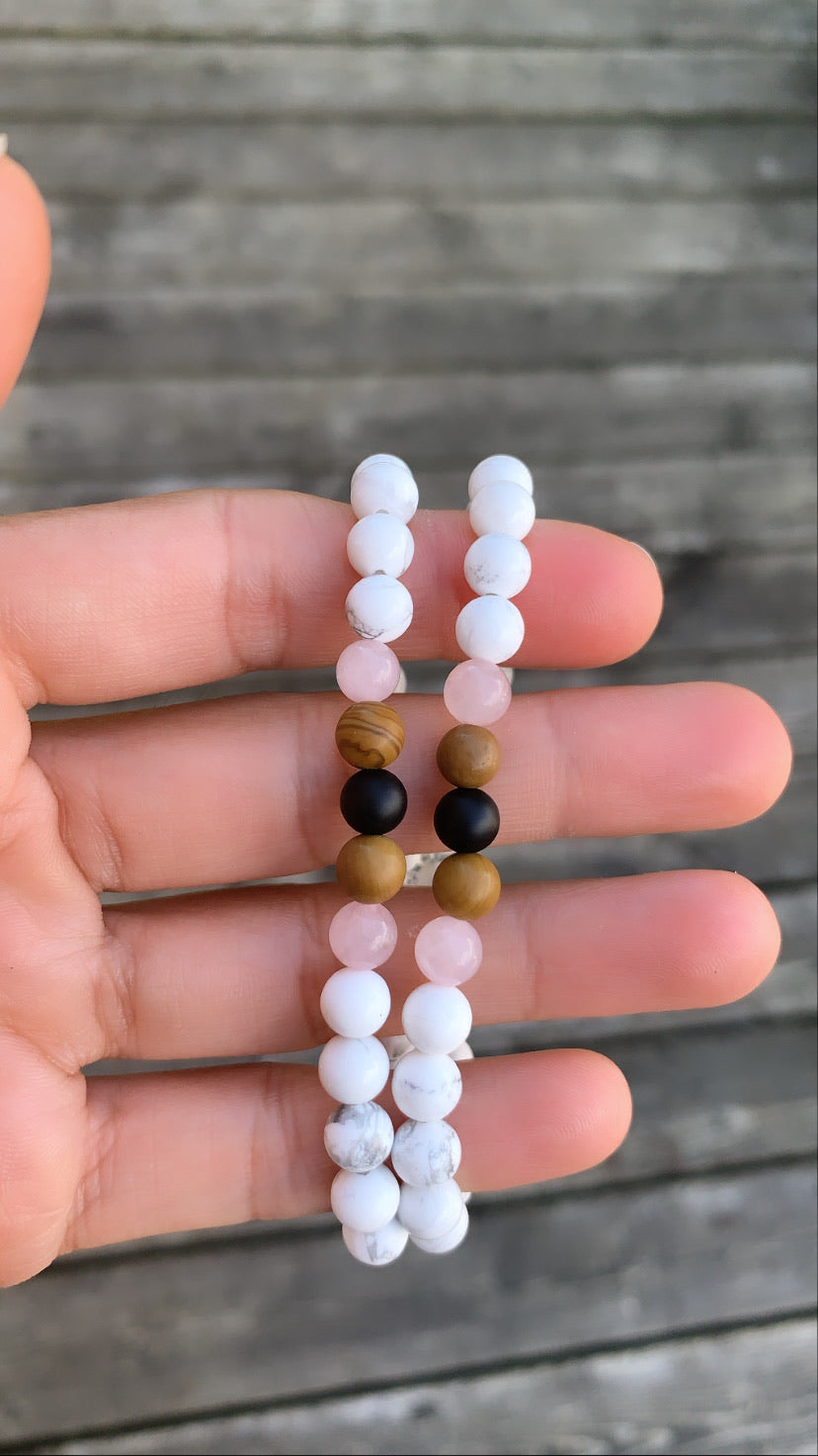 Howlite, Wood Jasper, Rose Quartz, Black Onyx