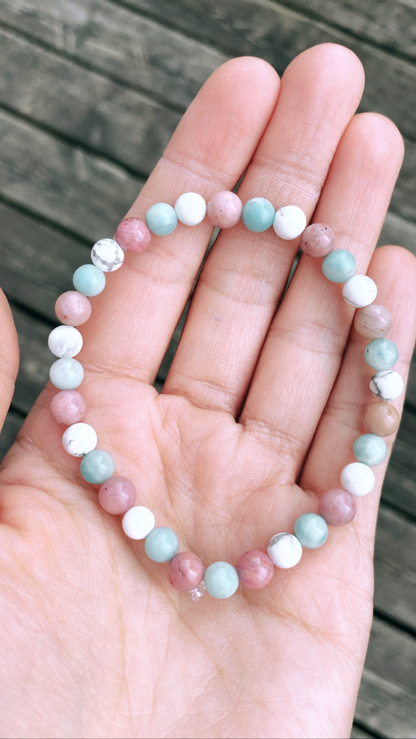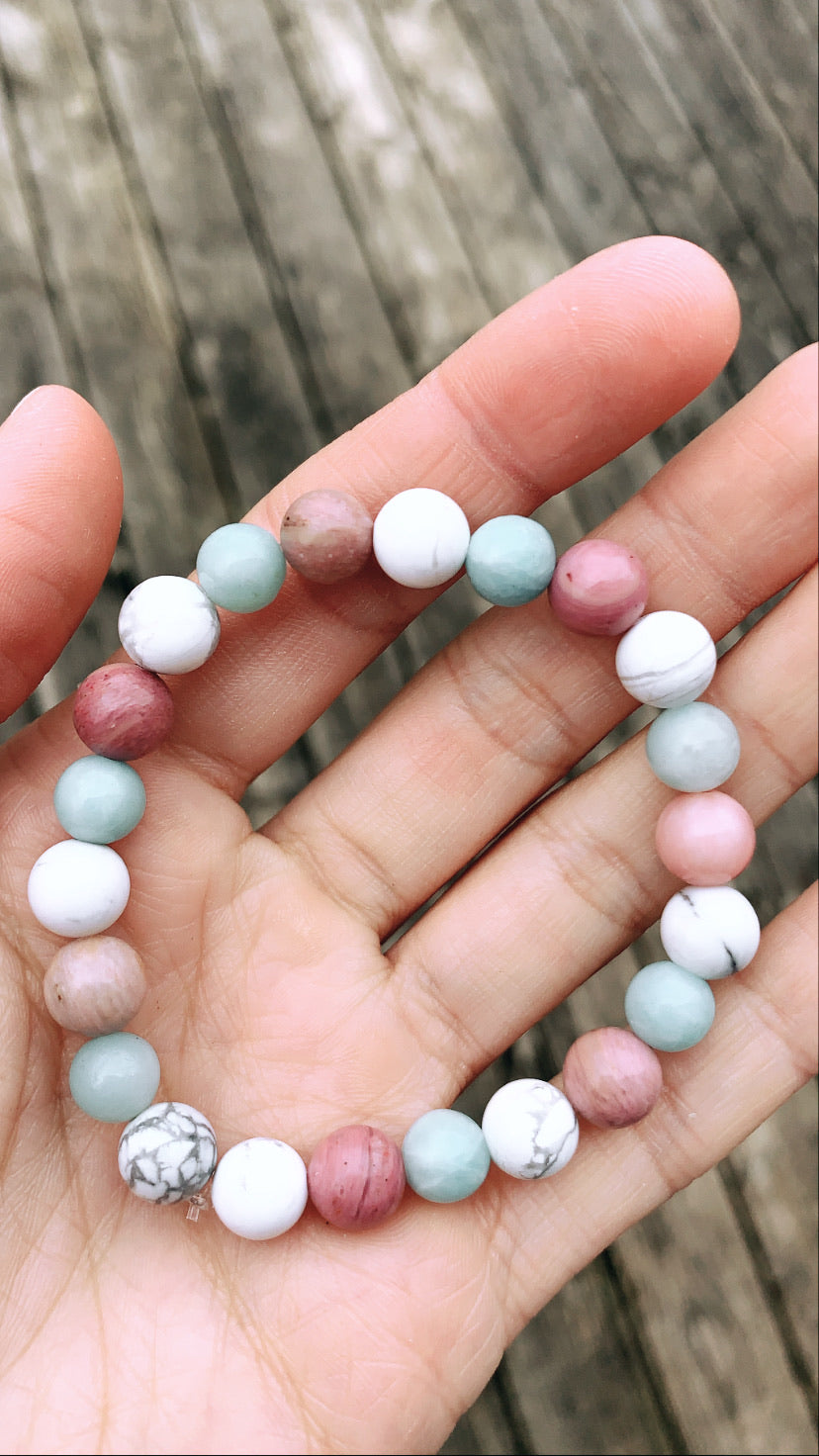 Pink Rhodonite|Blue Amazonite|Howlite.