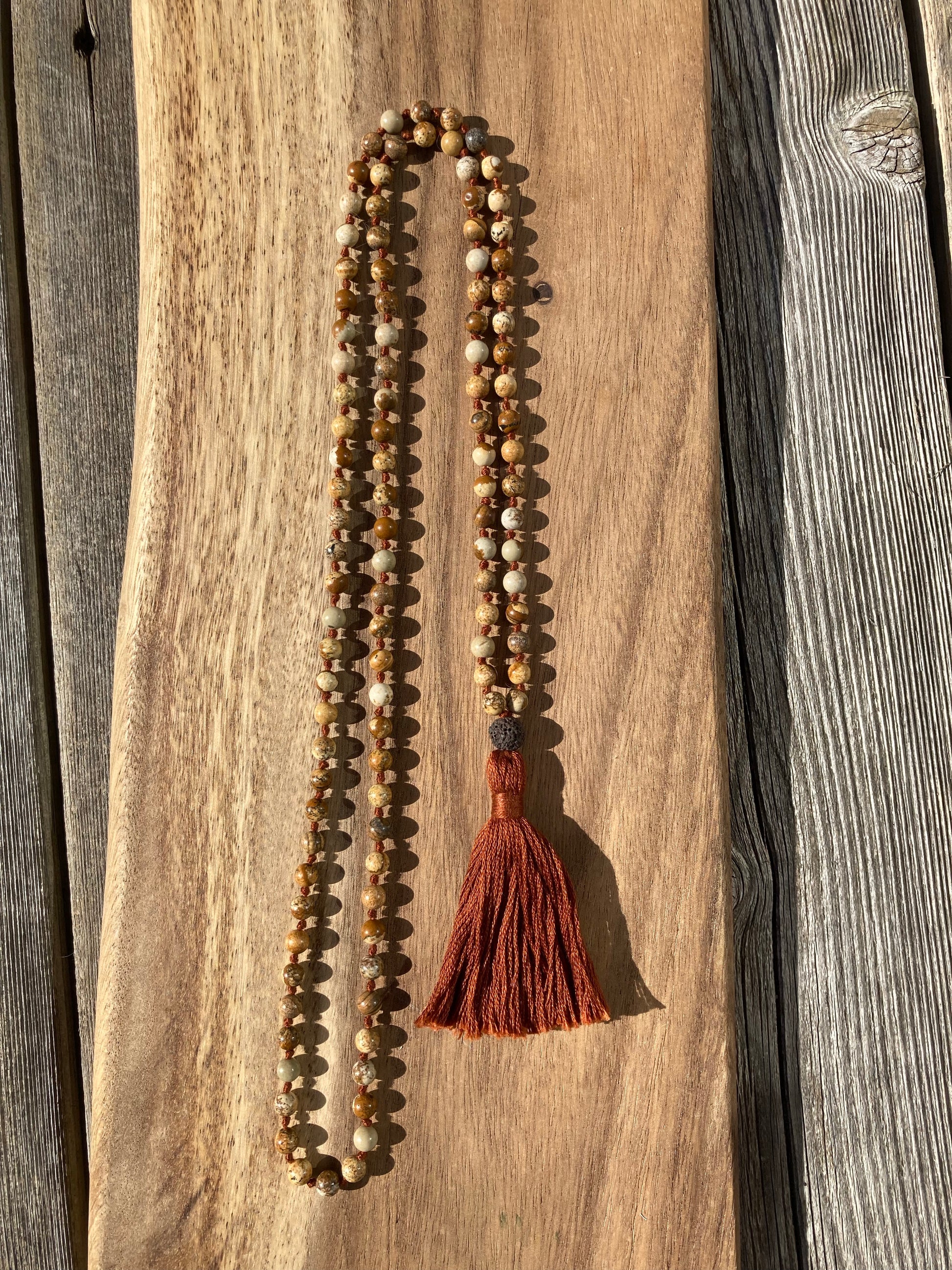 108 beads knotted in between. 6mm.