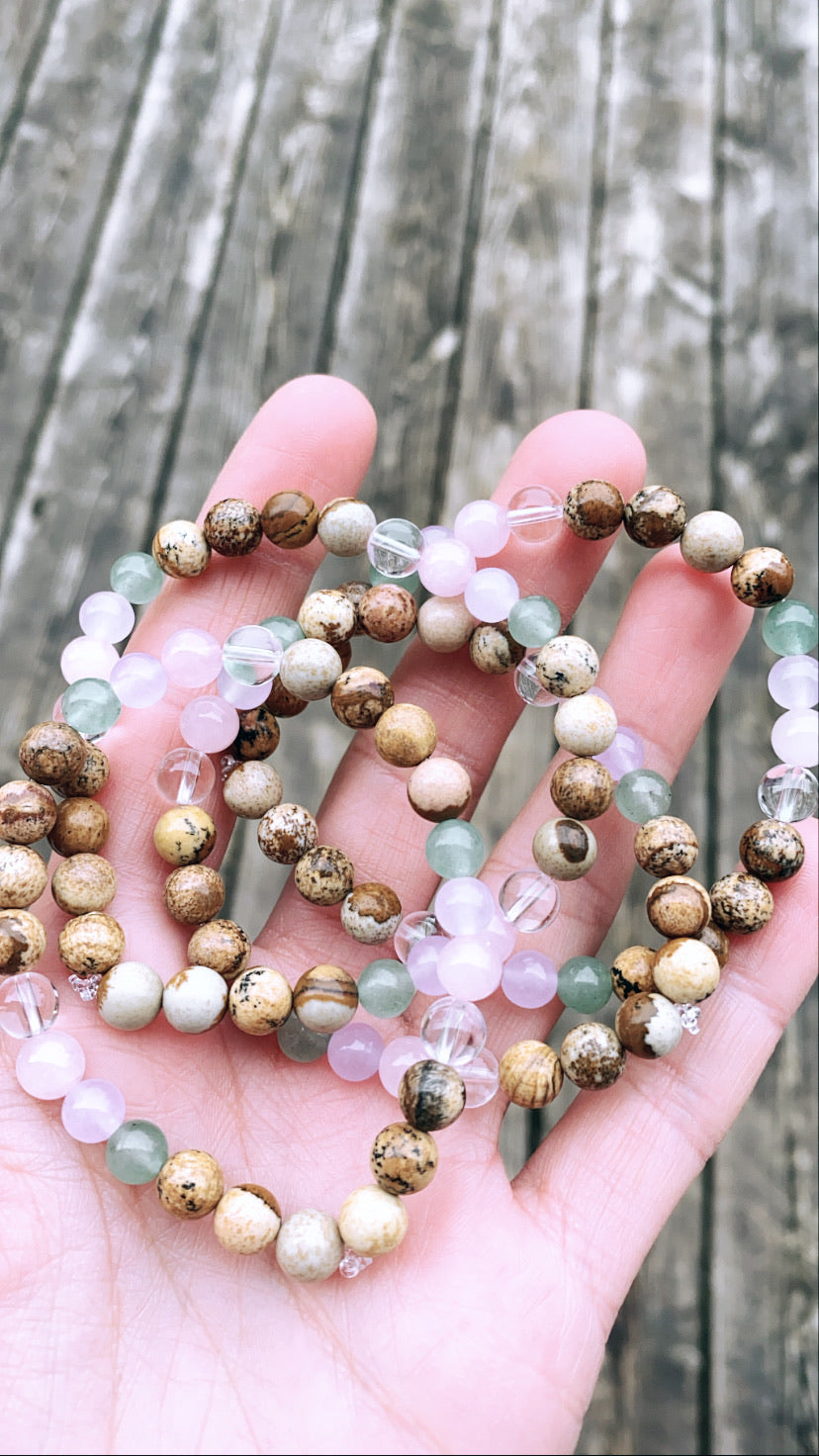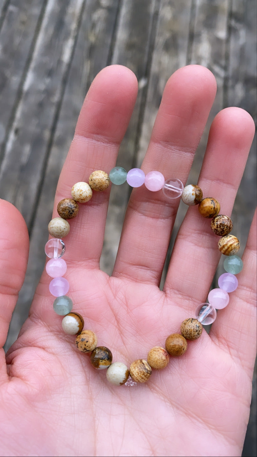 Picture Jasper, Rose Quartz, Violet Jade, Amethyst, Clear Quartz