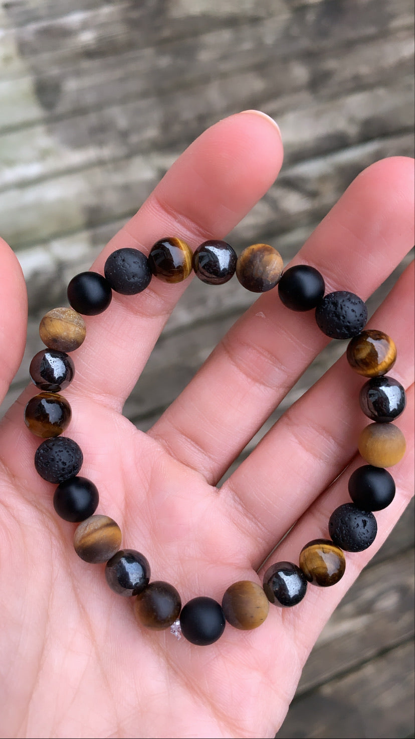 Black Lava, Tiger Eye, Black Onyx, Hematite